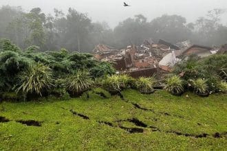 Prédio desaba em Gramado (RS) após chuva causar rachaduras nas ruas da cidade