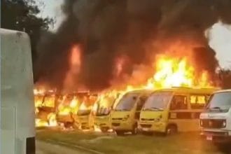 Incêndio criminoso atinge 9 micro-ônibus escolares em Franco da Rocha, na Grande SP