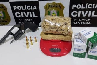 Mulher é presa em flagrante com drogas, arma e munições em Santana/Ap