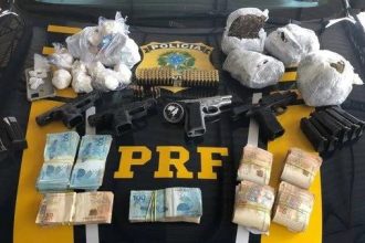 PRF apreende dinheiro, 4 pistolas e drogas em veículo com destino a garimpo no Amapá.