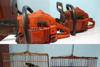 Polícia apreende motoserras e resgata aves silvestres mantidas em cativeiro no Amapá.