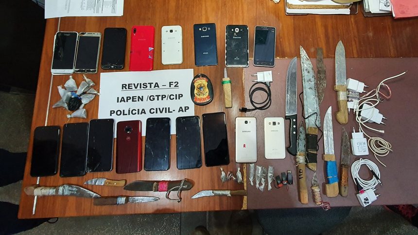 Celulares, drogas e facas são apreendidos no Instituto de Admistração Penitenciária do Amapá durante operação crime organizado.