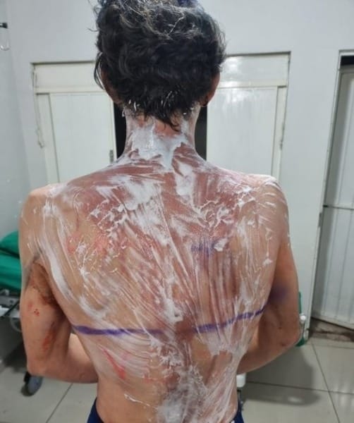 Neste local o produto foi jogado no corpo deles. O delagado acredita que além da creolina algum outro produto químico tenha sido usado. Três suspeitos foram identificados, segundo a polícia.