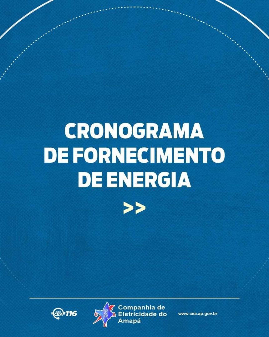 A Companhia de Eletricidade do Amapá (Cea) divulgou na na tarde deste domingo (8), o cronograma de rodízio de fornecimento de energia elétrica nas 13 cidades do Amapá que foram afetadas pelo apagão na noite de terça-feira (3).