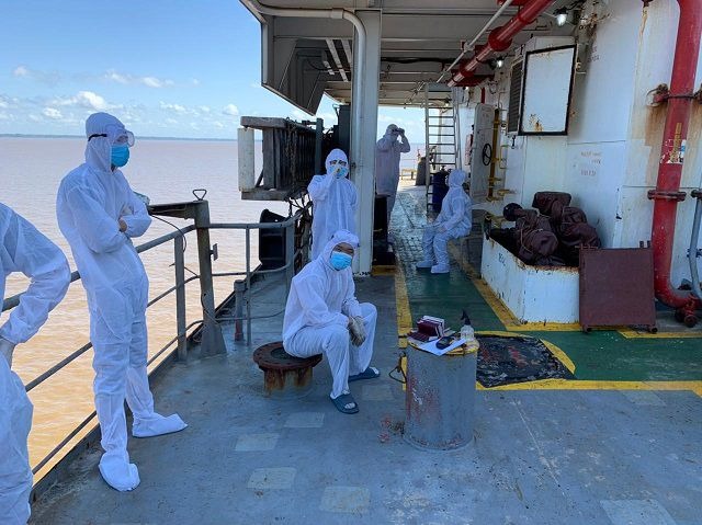 O corpo do tripulante de um navio de bandeira panamenha que morreu nesta segunda-feira (16) em decorrência da covid-19, foi retirado da embarcação na manhã nesta quarta-feira (18).