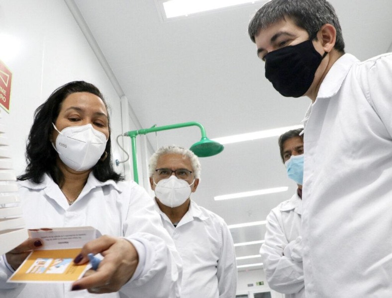 O senador foi recebido pelo diretor de Bio-Manguinhos, a unidade, dentro da Fundação, que trabalha exclusivamente na produção do imunizante.