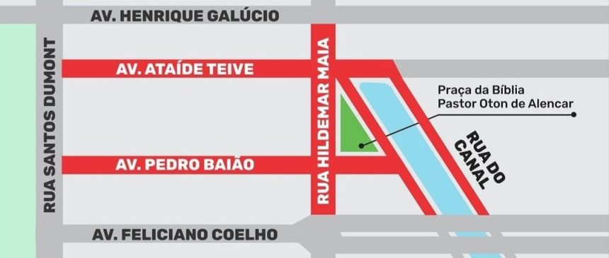 As interdições acontecem devido ao evento de entrega da Praça da Bíblia – Pastor Oton de Alencar, na quarta-feira (29) que terá show com atrações nacionais de Bruna Karla e preletora Camila Barros.