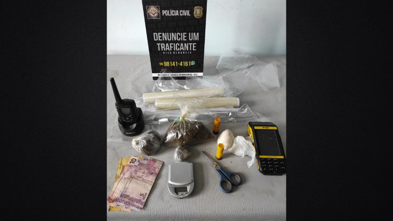 A prisão aconteceu em uma residência localizada em área de ponte no bairro Perpétuo Socorro. No local, foram apreendidas, aproximadamente, 250 gramas de drogas (maconha e cocaína), balança de precisão, material para embalar as drogas, máquina de cartão de crédito, rádio comunicador e dinheiro.