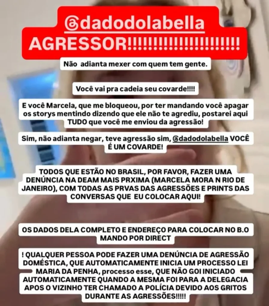 “Coagida”, diz advogado sobre ação de Marcela após agressão de Dado