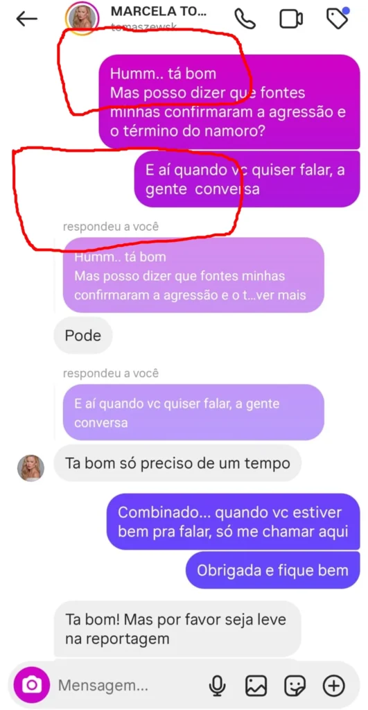 Mais cedo, Marcela Tomaszewski surgiu nos stories do Instagram e afirmou que não falaria mais sobre o caso e que apenas seu advogado cuidaria da situação a partir de agora.