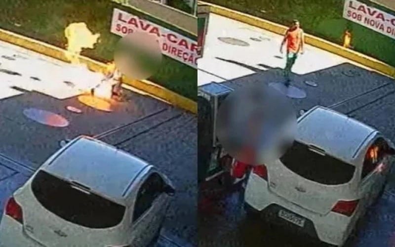 Uma câmera de segurança que registrou o momento da discussão, mostra os dois discutindo e o frentista segurando uma bomba de combustível. Em dado momento, o funcionário dispara o líquido inflamável no homem. Poucos segundos depois, o fogo começa.