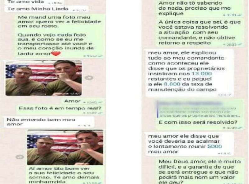 A Delegada informou ainda que, o suposto namorado sempre arranjava desculpa para não fazer vídeo chamada com a vítima, alegando que estava em campo de guerra, ou no alojamento, ou preso. O casal usou contas bancárias do Brasil para receber os valores, tendo, o suposto namorado justificado que o dinheiro chegaria até ele através da Embaixada.