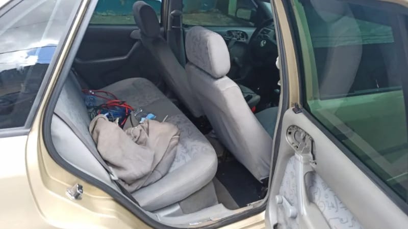 Ao chegar à Rua Barra da Forquilha, a PM localizou um suspeito com um simulacro de arma de fogo e a vítima amarrada no carro dos criminosos.