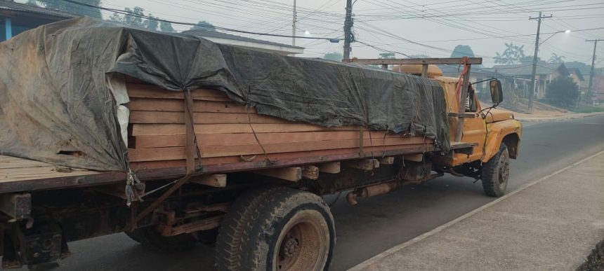 “A equipe estava em patrulhamento noturno na BR-156 em busca de ilícitos ambientais, quando se deparou com um caminhão de carroceria aberta, com dois cidadãos, transportando uma mercadoria coberta por lona plástica. Ao perceber a aproximação da viatura, o condutor apagou os faróis para tentar se esconder na escuridão. Os policiais abordaram o veículo e foi constatado que a carga tratava-se de aproximadamente 6m³ de madeira do tipo ‘Guaruba’, conforme informado pela proprietário do caminhão e dono da madeira. Solicitada a Documentação de Origem Florestal (DOF), o condutor informou não possuir e disse ser o responsável pela extração, corte e transporte da madeira. Relatou, também, que a extração ocorreu no ramal Boa Vista, em área de mata nativa. O passageiro do caminhão, quando indagado, informou que estava somente trabalhando como ajudante/diarista e que a madeira tinha como destino uma marcenaria que não sabe precisar o nome, mas que fica em Laranjal do Jari”, explicou o delegado.