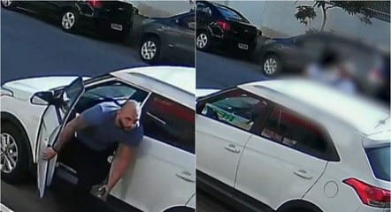 Nas imagens do circuito interno de uma loja, é possível ver que as pessoas que passavam pela rua ajudaram a jovem de 24 anos a se desvencilhar do ex . Em seguida, Rodrigo entra no carro e arranca com o veículo por cima da calçada.