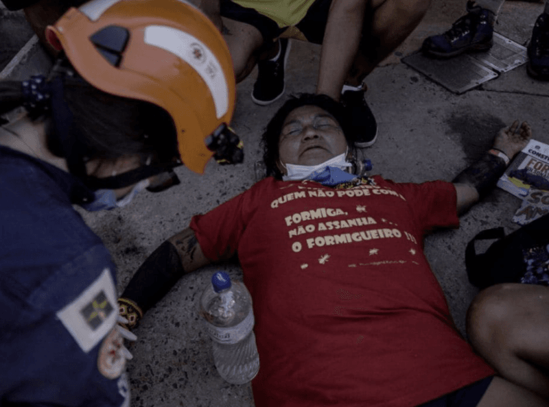 “Os policiais legislativos repeliram os indígenas com bombas de efeito moral, gás de pimenta e gás lacrimogêneo. Não houve disparo de tiros ou qualquer tipo de agressão física contra os manifestantes. Um policial legislativo foi atingido na perna por uma flecha e um servidor da área administrativa da Polícia Legislativa foi flechado no tórax”, diz a nota.