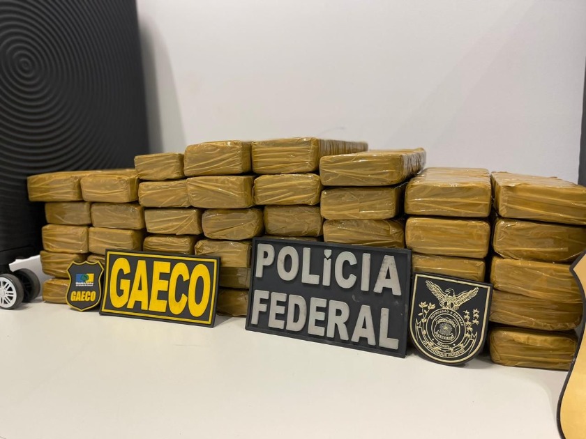 A jovem que não teve a identidade revelada foi flagrada na posse de aproximadamente 40 quilos de maconha (skunk) em duas malas.