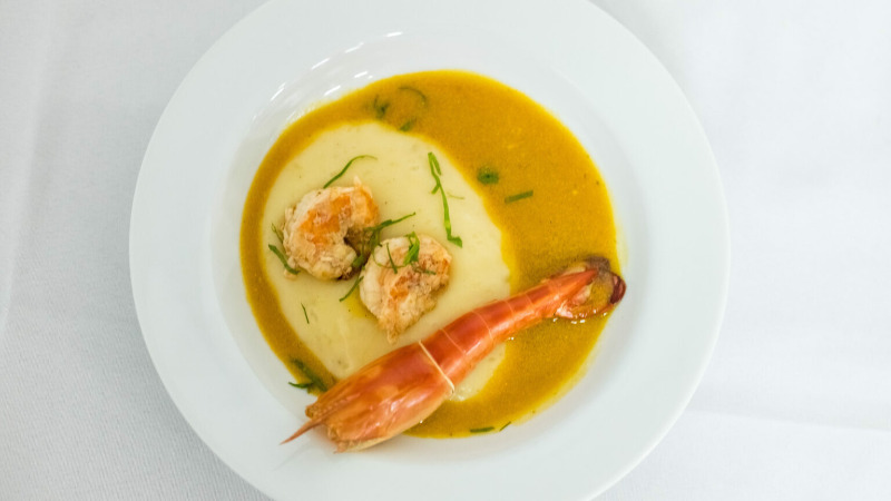 Horário: 17h às 18h - Cozinha a 4 mãos: camarões empanados servidos com musseline de castanha do Brasil, molho de açaí e tuile salgada de granola, com o chef Alessandro Silva