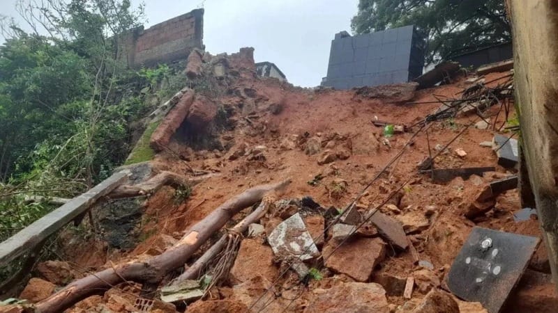O Corpo de Bombeiros esteve no local no sábado (24) para vistoriar a casa após um deslizamento de terra. No dia seguinte, o muro de arrimo do cemitério, que fica aos fundos do imóvel, caiu.