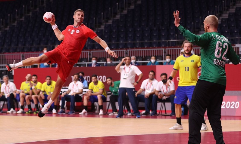 A seleção masculina de handebol começou a participação na Olimpíada de Tóquio (Japão) com uma derrota de 27 a 24 para a Noruega, na noite desta sexta-feira (23) em partida válida pelo Grupo A da competição disputada no Ginásio Nacional Yoyogi.