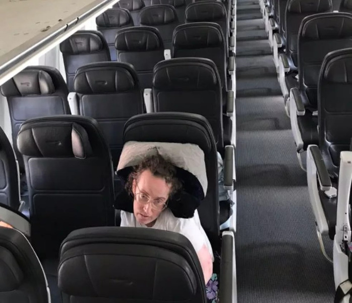 “Estou paralisada do pescoço para baixo, então não posso usar meus braços ou pernas. Para sair de um avião, preciso de duas pessoas para me levantar do assento do avião em uma cadeira de corredor, que é uma cadeira de rodas estreita especialmente projetada para me empurrar pelo corredor para fora do avião e me colocar na minha cadeira de rodas esperando do lado de fora”, explicou.