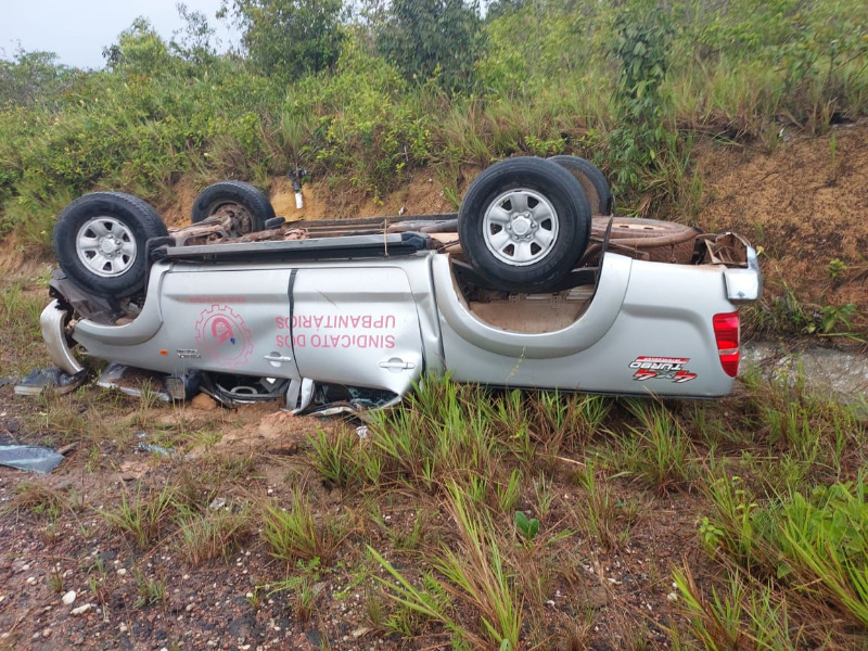 Passageiros sobrevivem após caminhonete capotar na BR-156, no AP