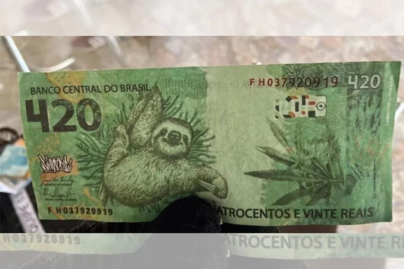 “O que mais chamou atenção foram os desenhos de maconha e bicho-preguiça estampados na nota. No outro lado da cédula falsa, a efígie da República aparece soltando uma fumaça pela boca”, disse a PF em nota.