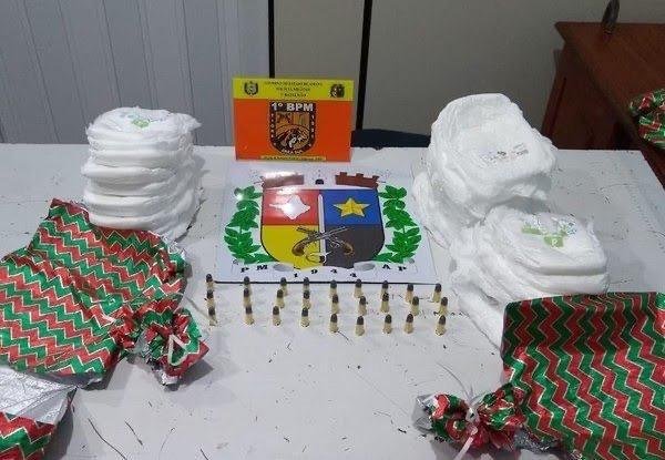 “Detectou-se que ele estava transportando dois pacotes e dentro destes pacotes estavam fraldas descartáveis. E para surpresa da equipe encontrou dentro de cada fralda uma munição de revólver calibre 38”, relatou o capitão Alex Sandro Chaves, do 1º BPM.