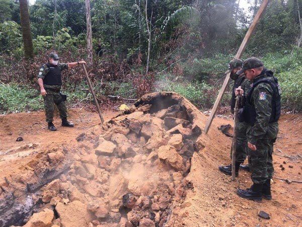 “Vamos inutilizar essa caieira destruindo a forma de acondicionamento de gases, de pressão de ar aí dentro, você acaba inutilizando também o material que está sendo produzido, evitando que o carvão ilegal seja utilizado”, explicou o tenente Silva Viana.