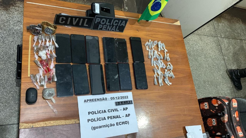 Durante o cumprimento de mandados de busca e apreensão nas celas do Instituto de Administração Penitenciária do Amapá (Iapen), na segunda-feira (5), a Polícia Civil encontrou vários aparelhos de celular e drogas escondidas dentro de vasos sanitários.