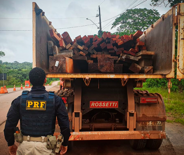 Um caminhão com cerca de 15,35m³ de madeira serrada extraída de forma irregular foi apreenidido pela Polícia Rodoviária Federal (PRF-AP) na sexta-feira (13), na BR-156, na entrada de Oiapoque, município a 590 quilômetros da capital, Macapá.