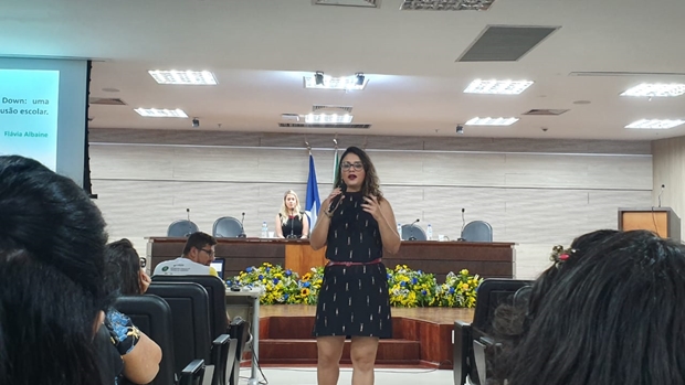 Como uma das três palestrantes convidadas, Flávia escolheu o tema “Síndrome de Down: uma reflexão para a inclusão escolar” e esclareceu para a plateia de mais de 150 pessoas os pontos que também observa em seu dia a dia na comarca de Colorado do Oeste (RO), como Membro da Comissão de Direitos das Pessoas com Deficiência da Associação Nacional das Defensoras e Defensores Públicos (ANADEP) e em sua vivência como fundadora do Juntos pela Inclusão Social.