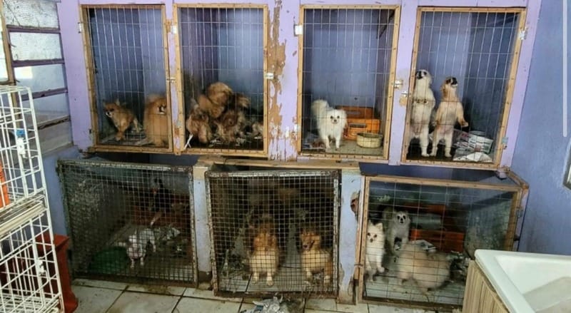 Em uma ação da Brigada Militar (BM), os cachorros foram encontrados presos em gaiolas pequenas e superlotadas, segundo a RBS TV.