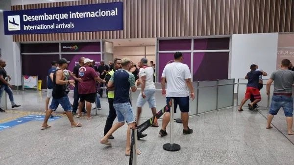 O momento de tensão acabou em briga generalizada, como é possível ver em imagens publicadas nas redes sociais. Torcedores do Fluminense partiram para cima de seguranças do clube e do aeroporto, enquanto protestavam e tentavam invadir o setor em que os jogadores estavam.