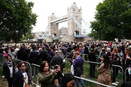 Público forma fila quilométrica para se despedir da rainha em Westminster