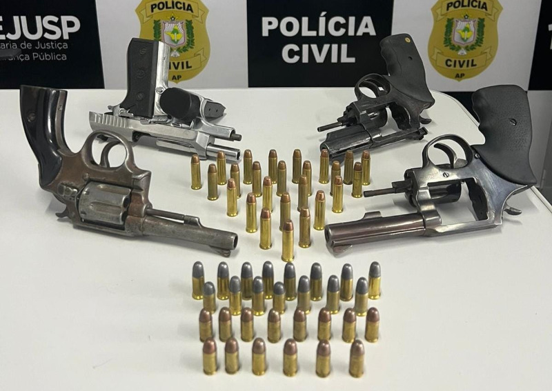Uma pistola, três revólveres e 54 munições foram apreendidas pela Polícia Civil do Amapá na manhã desta quarta-feira (14), em Santana, município a 17 quilômetros da capital, Macapá.