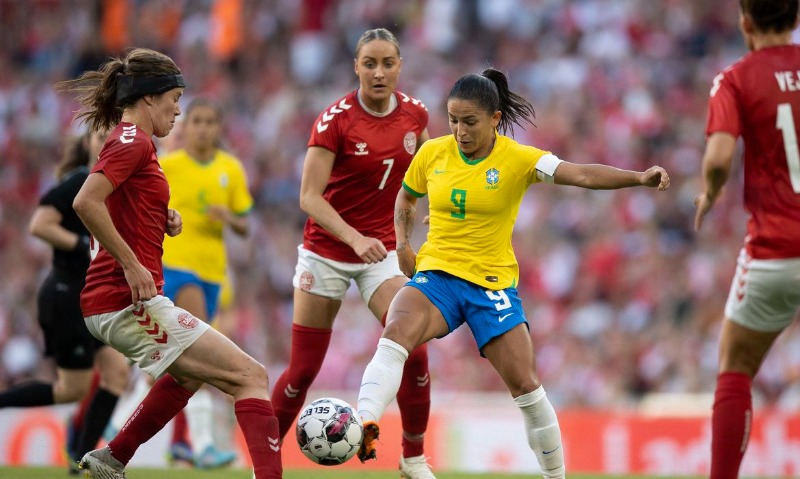 A seleção brasileira feminina de futebol perdeu por 2 a 1 para a anfitriã Dinamarca, com gol das adversárias no minuto final da partida, realizada na tarde desta sexta-feira (24), no Estádio Parken, na capital Copenhagen. O amistoso é o primeiro de dois jogos na Europa, que visam a preparação da equipe para a Copa América Feminina, a partir de 8 de julho na Colômbia. Na próxima terça (28), às 134h30 (horário de Brasília), o Brasil enfrenta a Suécia, vice-líder do ranking mundial da Fifa, na Friends Arena, na capital Estocolmo.