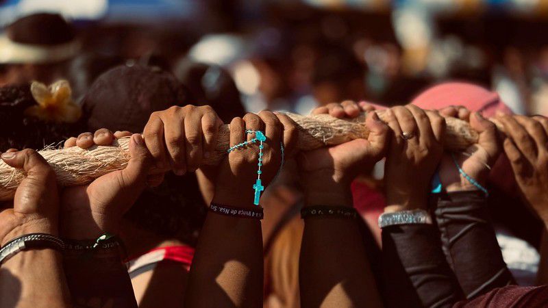 Tocar a corda que puxa a berlinda com a imagem de Nossa Senhora de Nazaré, tem grande significado para os fiéis | Foto: Jesiel Braga /PMM