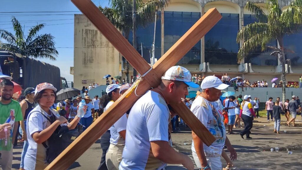 “Há 11 anos faço esse percurso, levando a cruz como forma de agradecimento pela saúde da minha filha, que era muito doente, mas, graças a Deus e à Nossa Senhora de Nazaré, ela foi curada”, disse, com os olhos marejados de emoção.