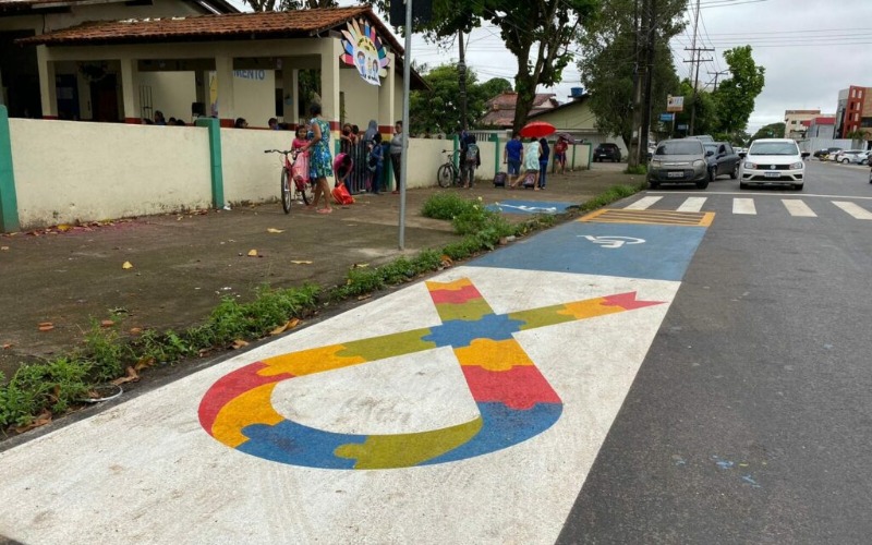 A Prefeitura de Macapá está tornando a identificação visual das vagas de estacionamento mais inclusiva, com a sinalização do laço colorido com quebra-cabeça, símbolo mundial do Transtorno do Espectro Autista (TEA), nas áreas de embarque e desembarque de veículos.
