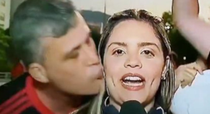 Jéssica acompanhava a chegada da torcida do lado de fora do estádio e estava falando ao vivo no canal quando o homem, sem autorização, deu um beijo em seu rosto.