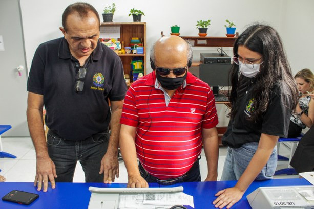 A Comissão de Acessibilidade também levou a Urna 2020 para a Associação de Cegos e Amblíopes do Amapá. Entre as novidades para os eleitores com deficiência visual, destaque para o aprimoramento da sintetização de voz. Agora também serão falados os nomes de suplentes e vices.